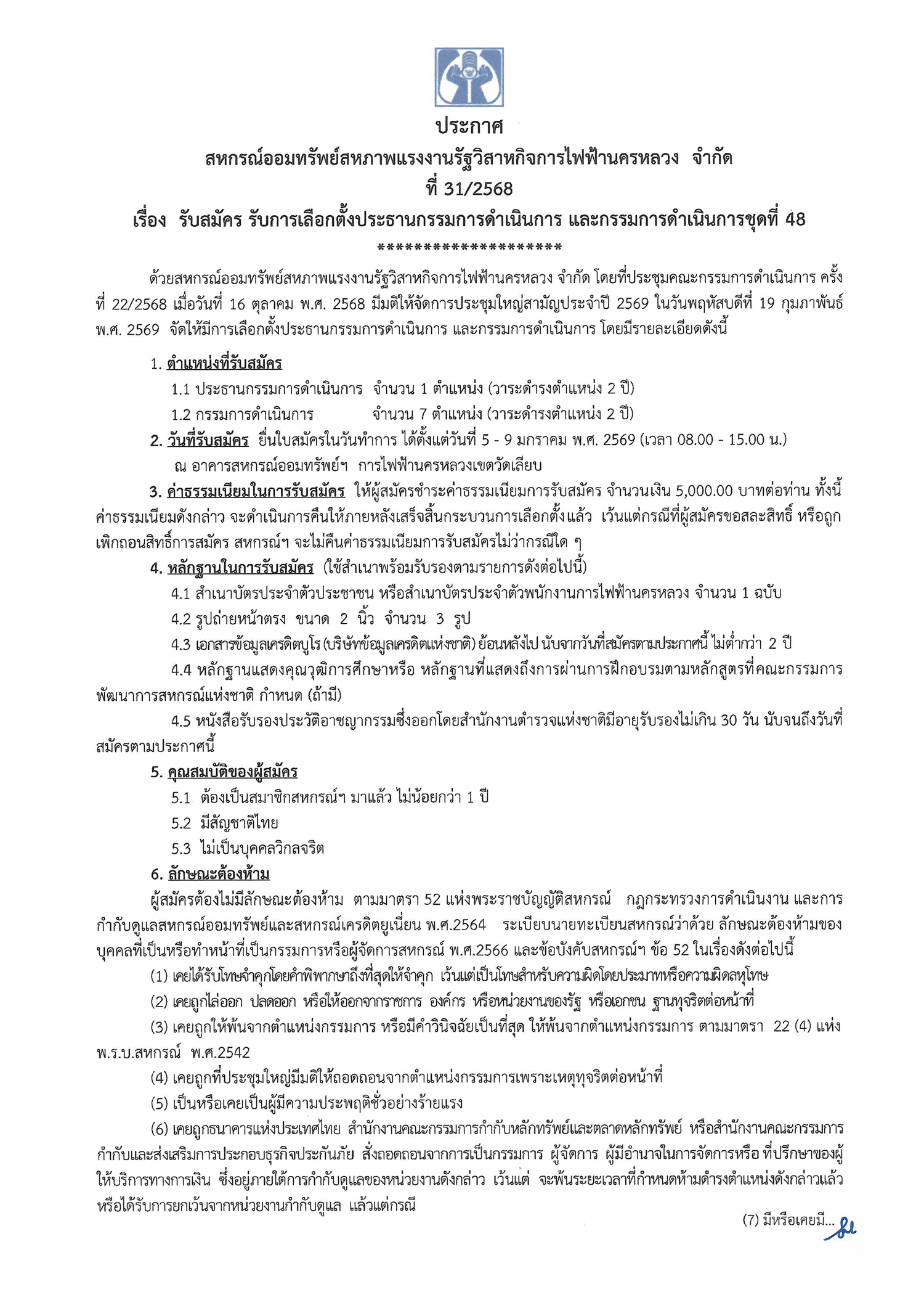 ประกาศที่ 31/2568 เรื่อง รับสมัคร รับการเลือกตั้งประธานกรรมการดำเนินการ และกรรมการดำเนินการชุดที่ 48