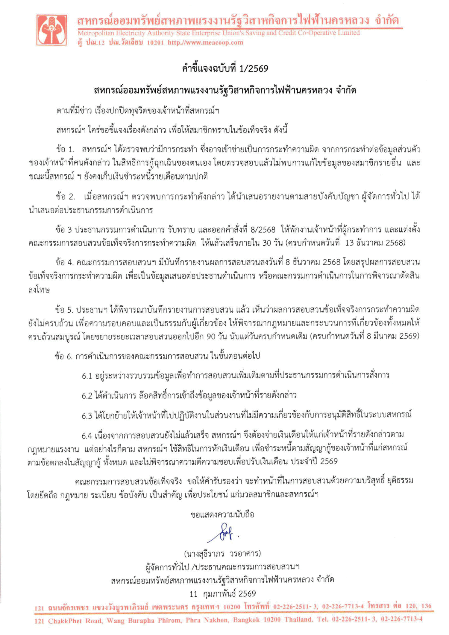 คำชี้แจงฉบับที่ 1/2569