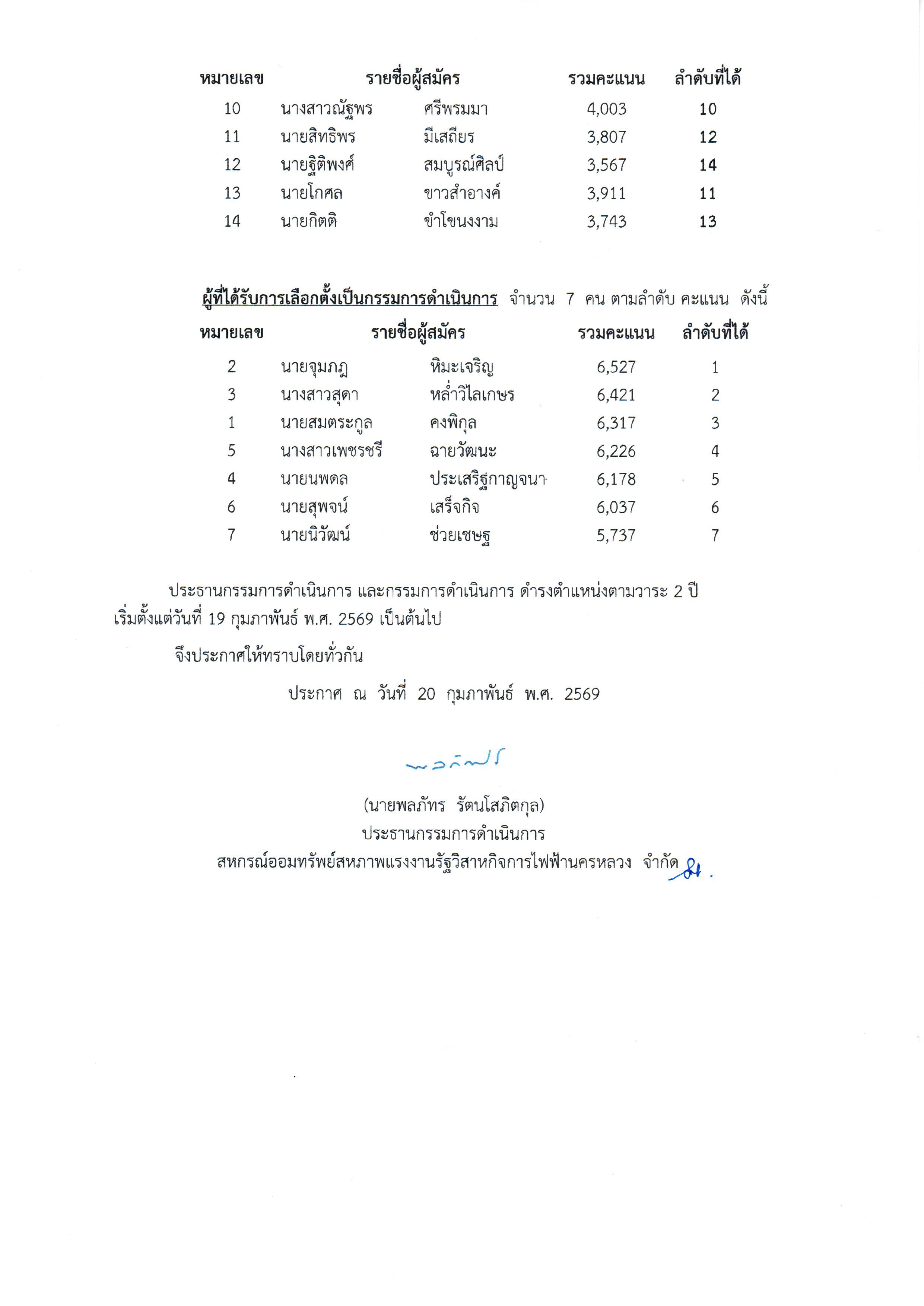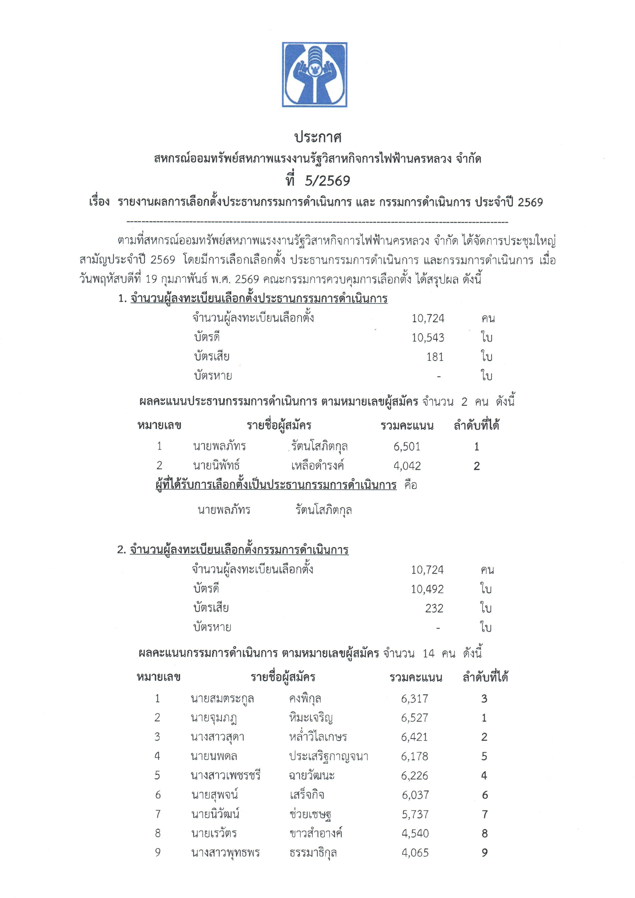 • ประกาศที่ 5/2569 เรื่อง รายงานผลการเลือกตั้งประธานกรรมการดำเนินการ และ กรรมการดำเนินการ ประจำปี 2569