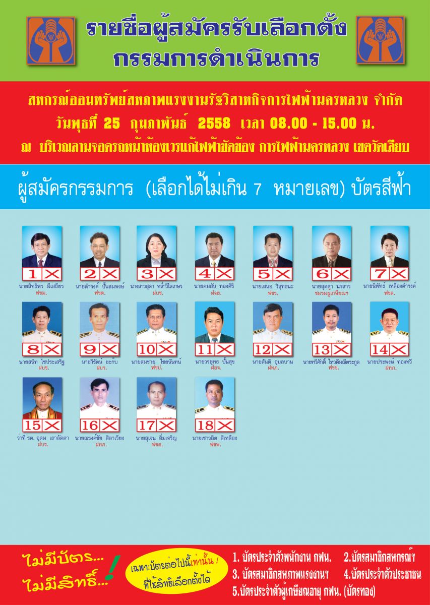 รายชื่อผู้สมัครรับเลือกตั้งกรรมการดำเนินการ ปี2558