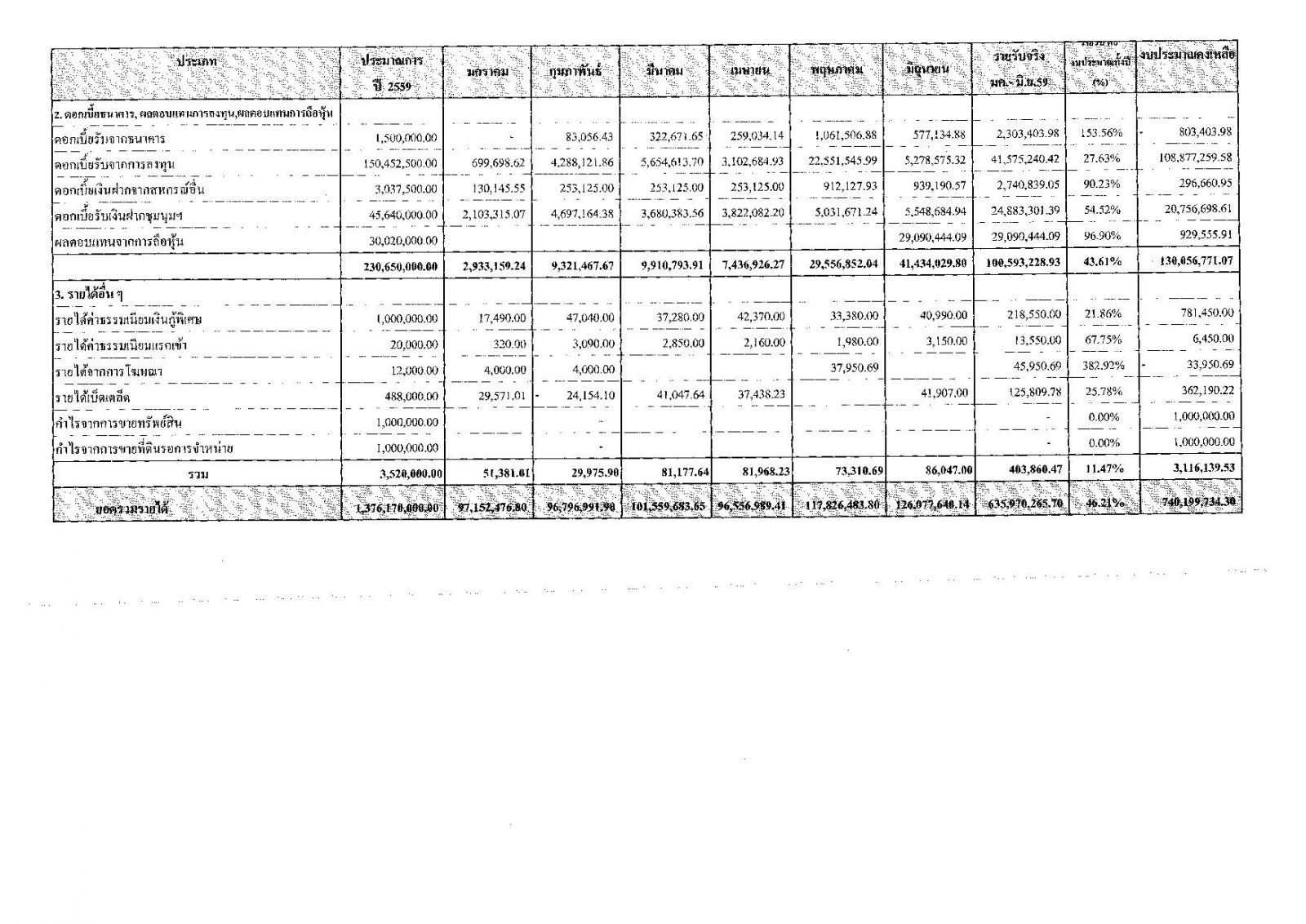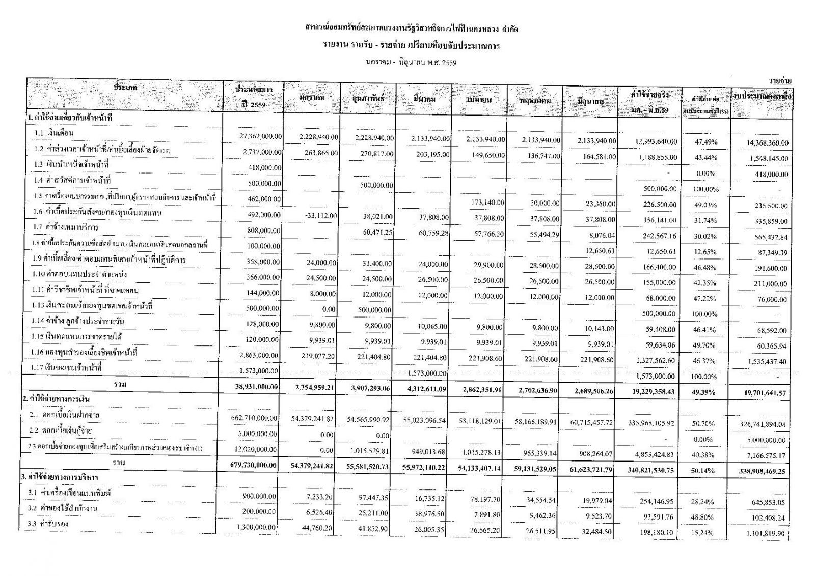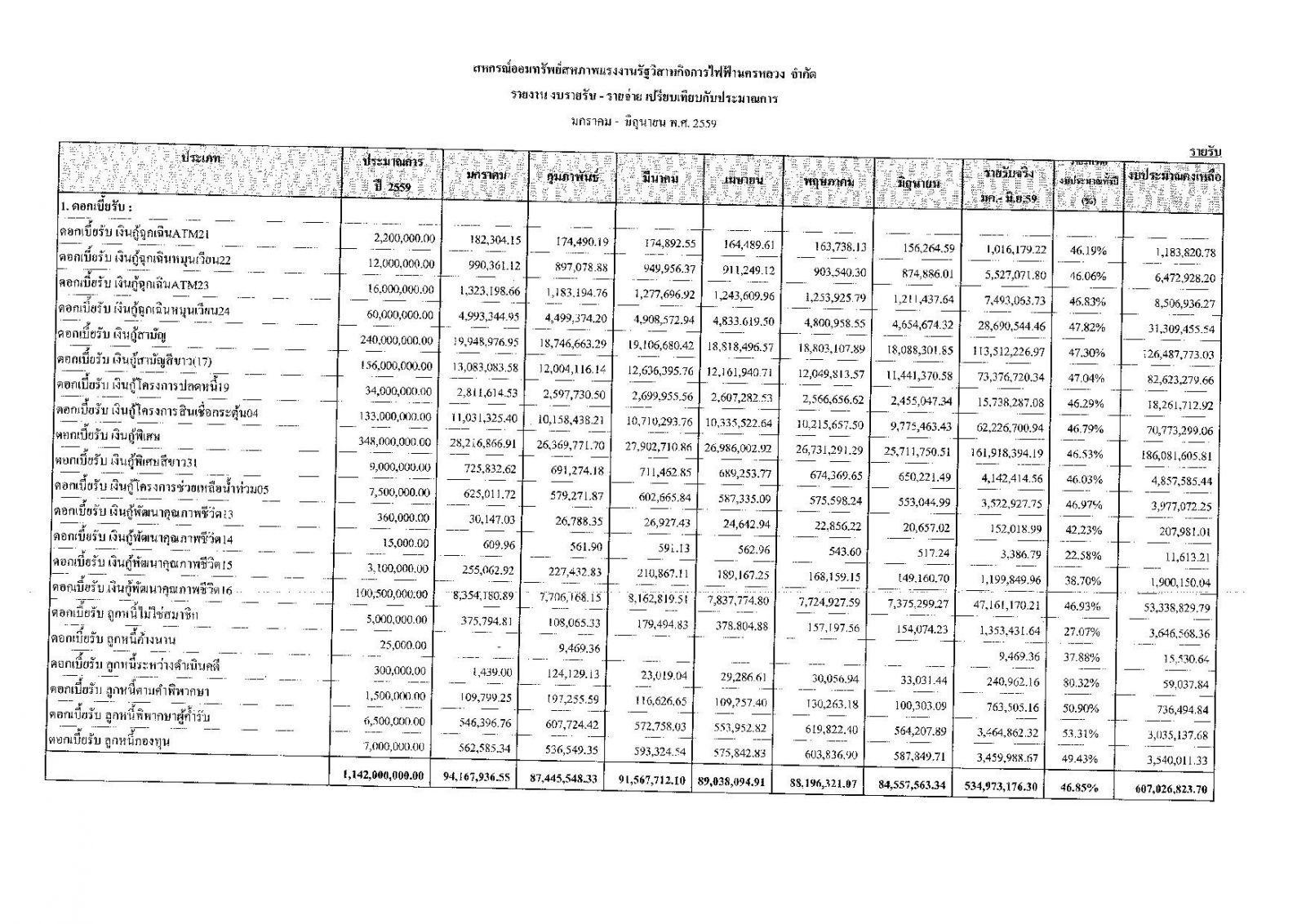 • รายงานงบการเงินประจำเดือน มิ.ย. 59