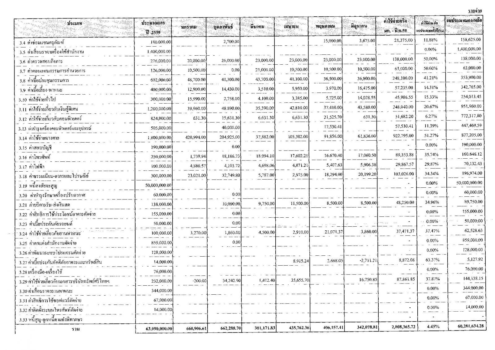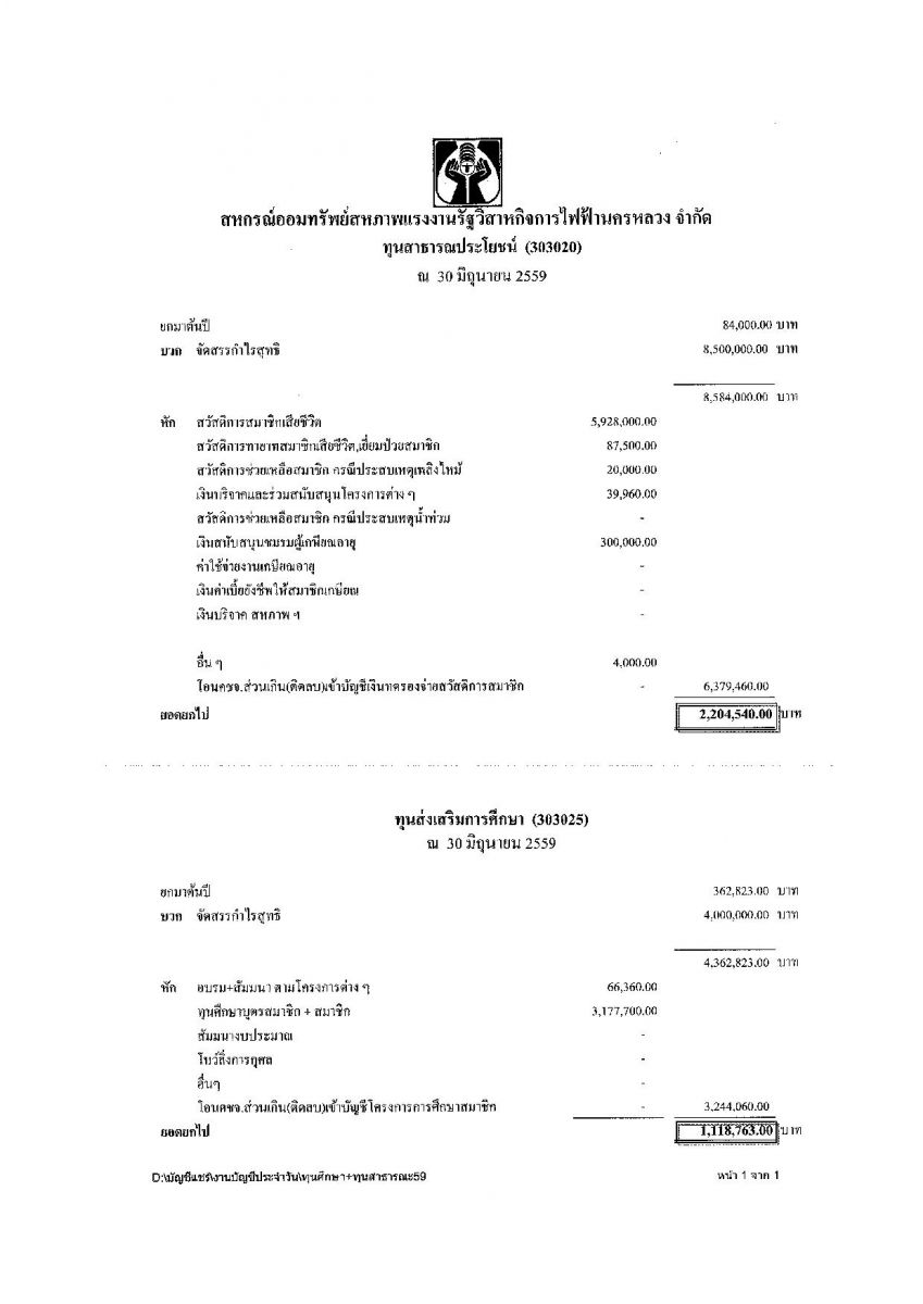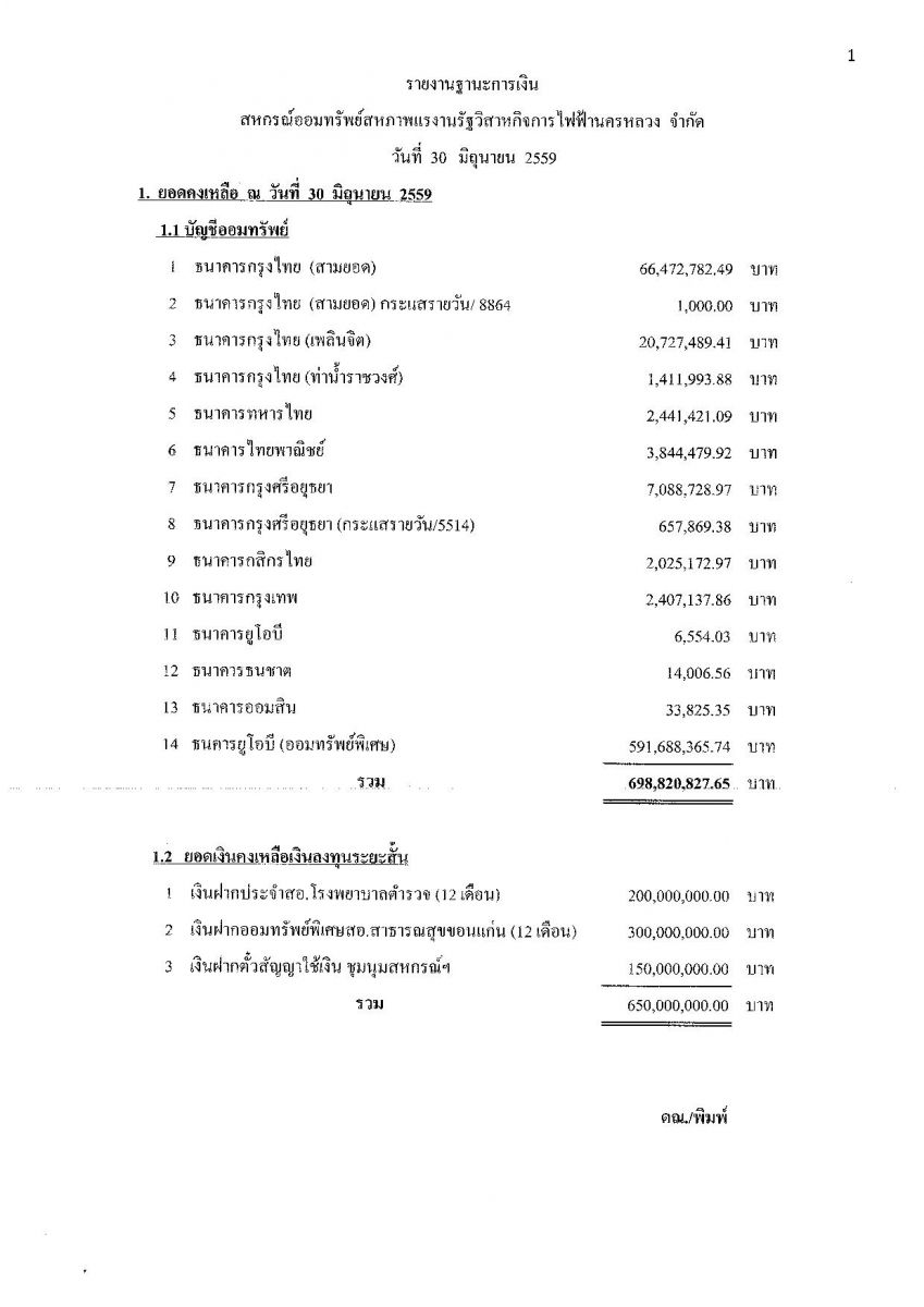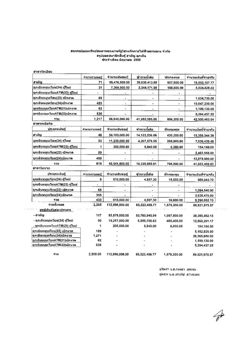 • รายงานงบการเงินประจำเดือน มิ.ย. 59