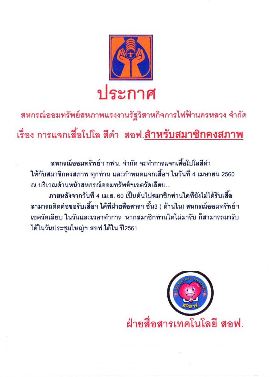 • การแจกเสื้อโปโล สีดำ สำหรับสมาชิกคงสภาพ