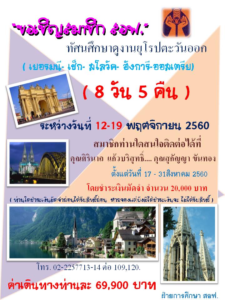 • ขอเชิญสมาชิก สอฟ. ทัศนศึกษาดูงานยุโรปตะวันออก