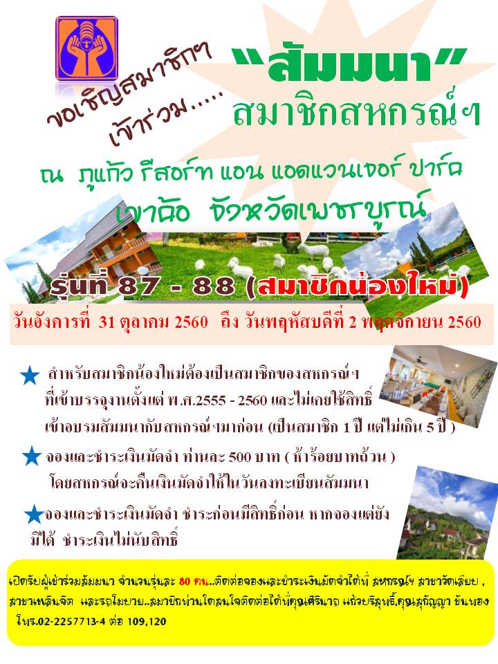 • ขอเชิญสมาชิกสหกรณ์ สัมมนา 31 ต.ค. - 2 พ.ย. 2560