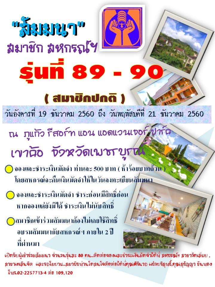• ขอเชิญสมาชิกสหกรณ์ สัมมนา 19 - 21 ธ.ค. 2560