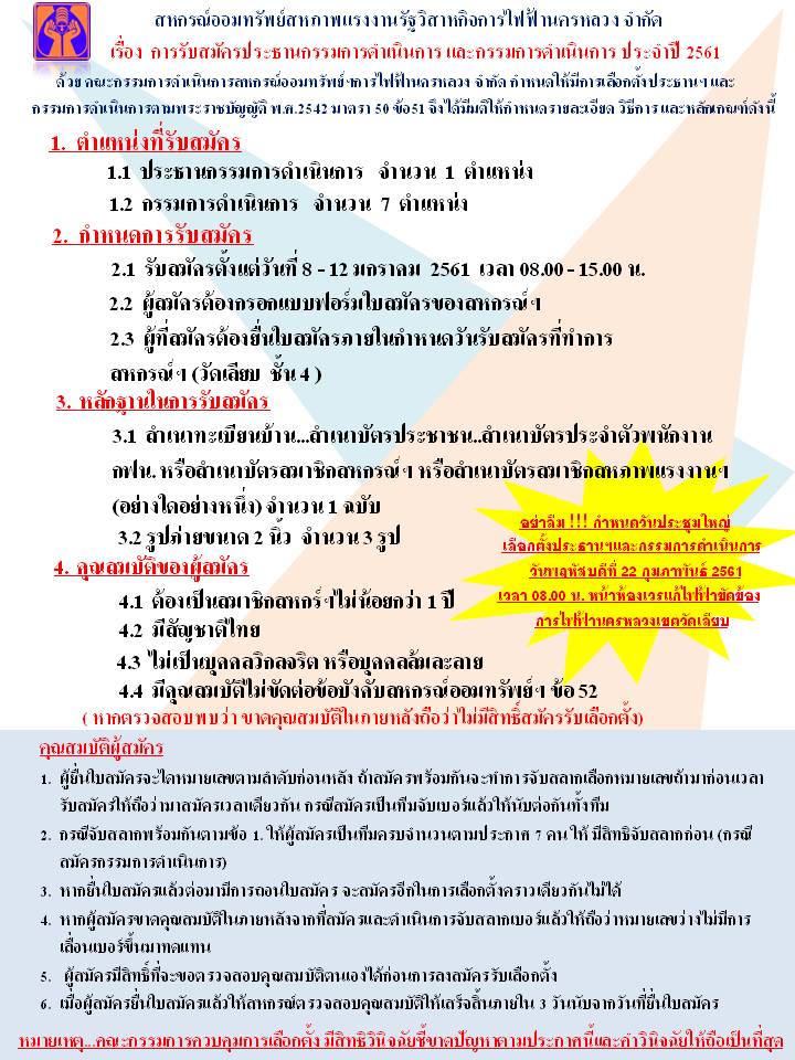 ประกาศรับสมัครประธานฯ และกรรมการ ประจำปี 2561
