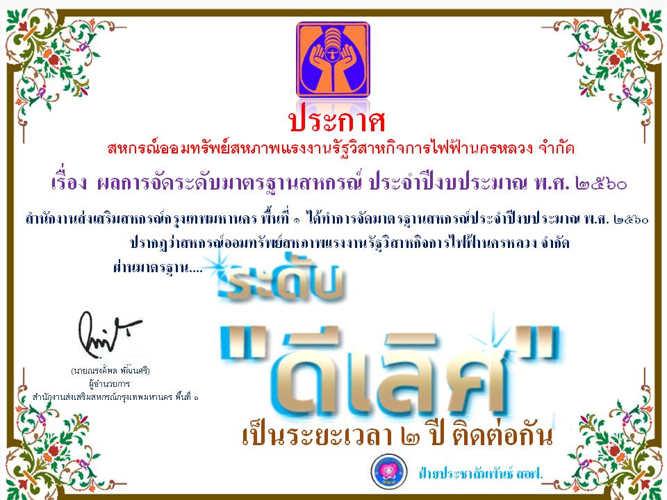 ประกาศ เรื่อง ผลการจัดระดับมาตรฐานสหกรณ์ ประจำปีงบประมาณ 2560
