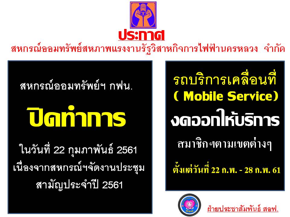• ประกาศปิดทำการสำนักงานสหกรณ์ และงดรถบริการเคลื่อนที่