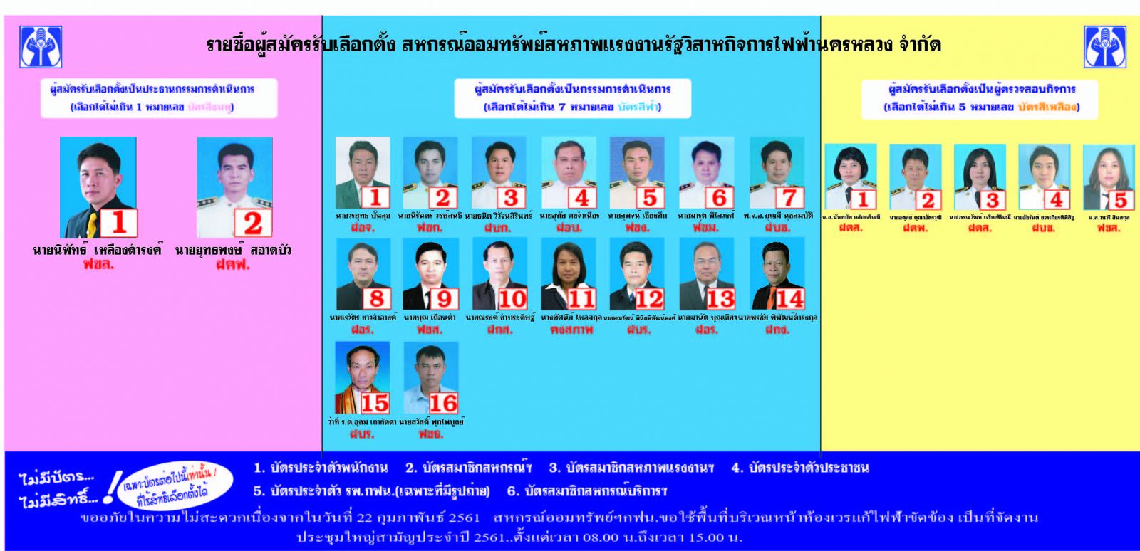 รายชื่อผู้สมัครรับเลือกตั้ง ประธานฯ กรรมการ และผู้ตรวจสอบ ประจำปี 2561