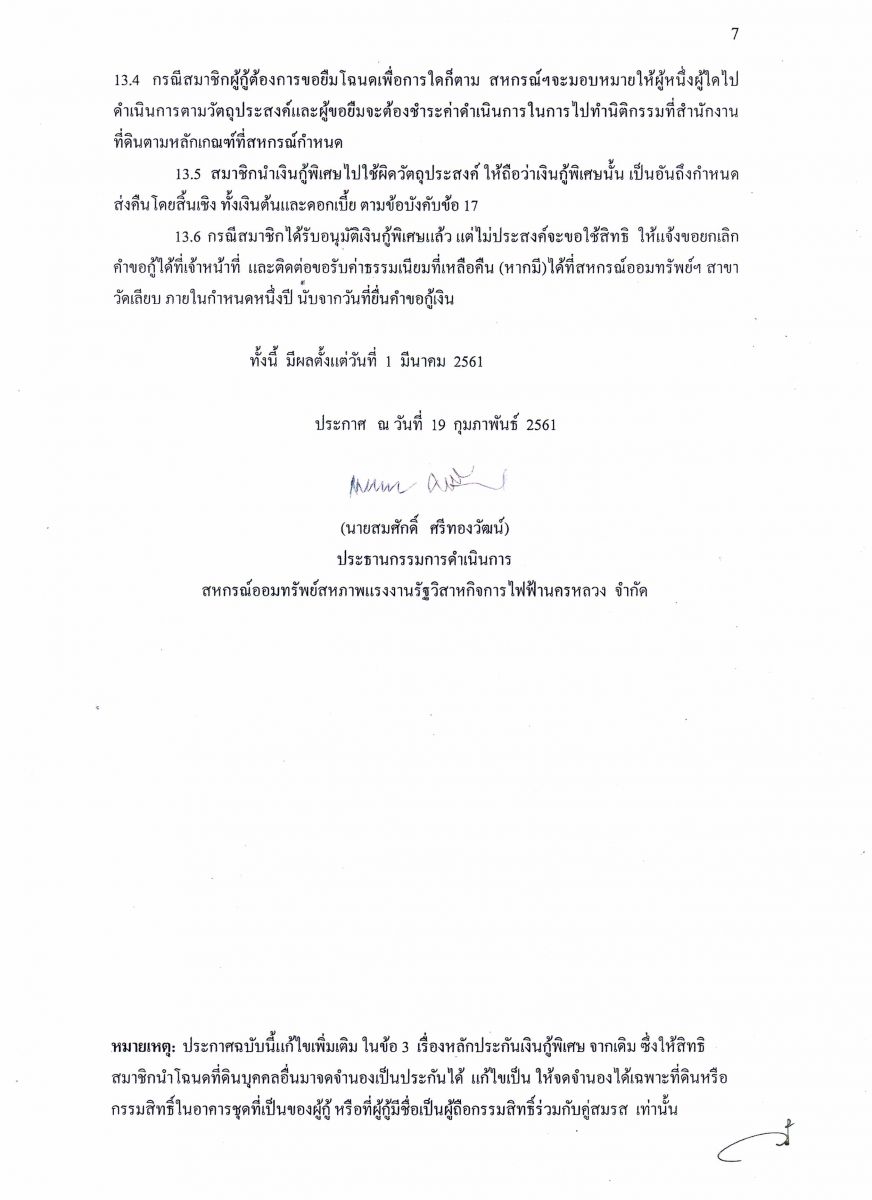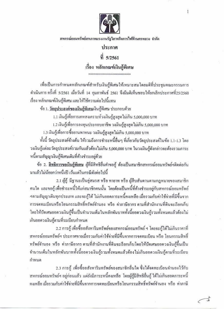 • ประกาศที่ 5/2561 เรื่อง หลักเกณฑ์เงินกู้พิเศษ