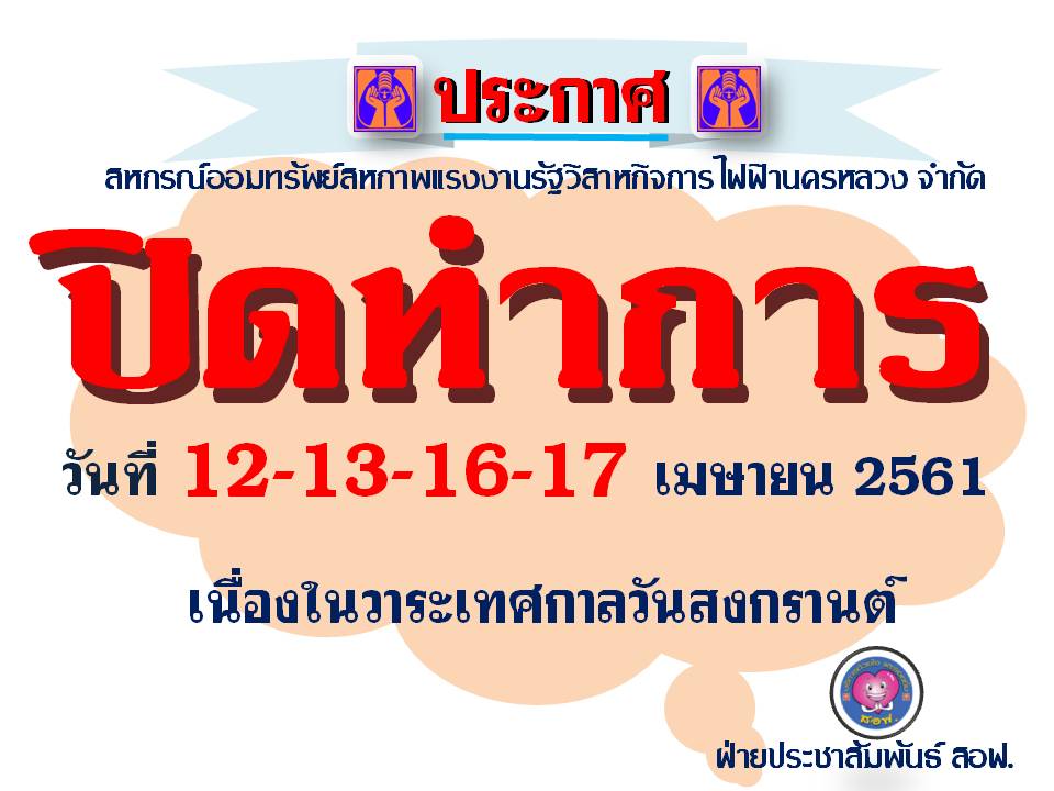 • ประกาศวันปิดทำการ สหกรณ์ฯ