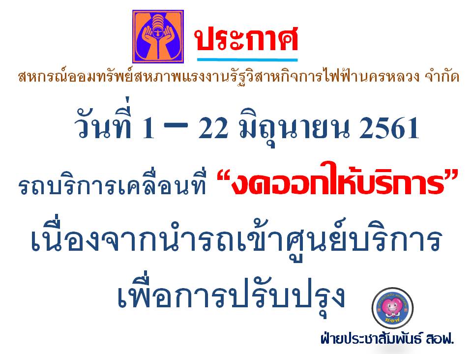 • ประกาศ เรื่อง รถบริการเคลื่อนที่งดออกให้บริการ