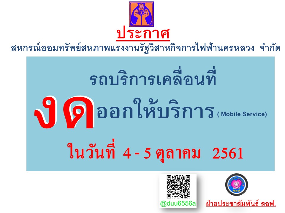 • ประกาศ รถบริการเคลื่อนที่ งดออกให้บริการ