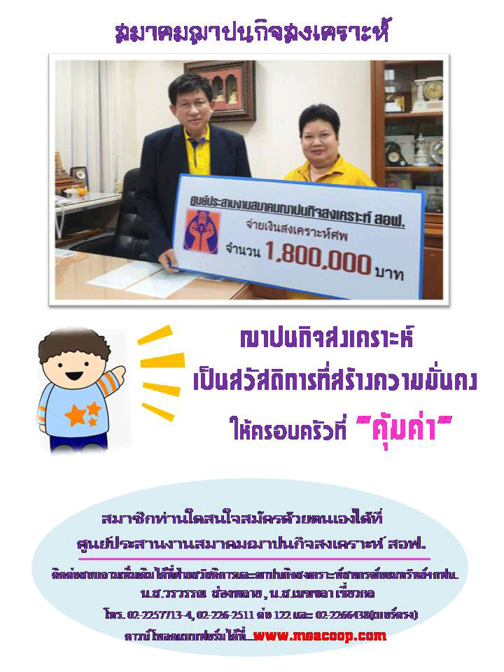 สมาชิกรับเช็คฌาปนกิจสงเคราะห์ จำนวน 1,800,000 บาท