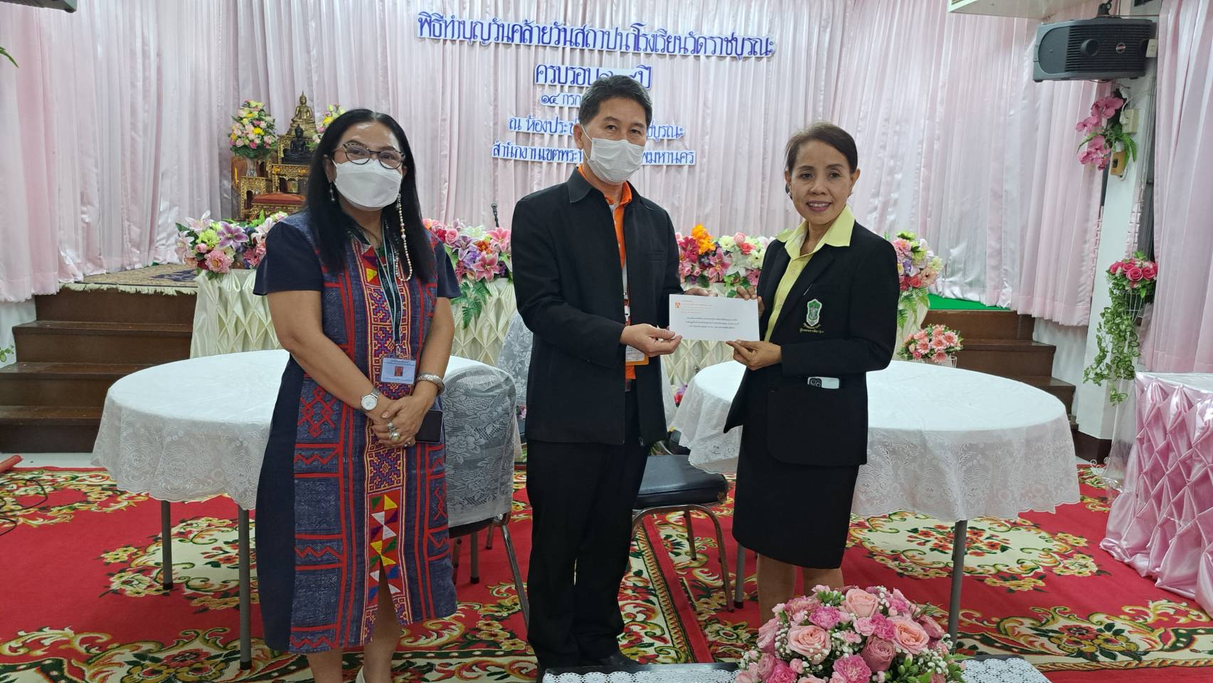 นายนิพัทธ์ เหลืองดำรงค์ รองประธานกรรมการดำเนินการ และนางสาววรวรรณส่องพลาย ผู้จัดการทั่วไป เป็นผู้แทนสหกรณ์ออมทรัพย์ฯ ร่วมพิธีทำบุญวันคล้ายวันสถาปนาโรงเรียนวัดราชบูรณะ(วัดเลียบ) ครบรอบ 129 ปี
