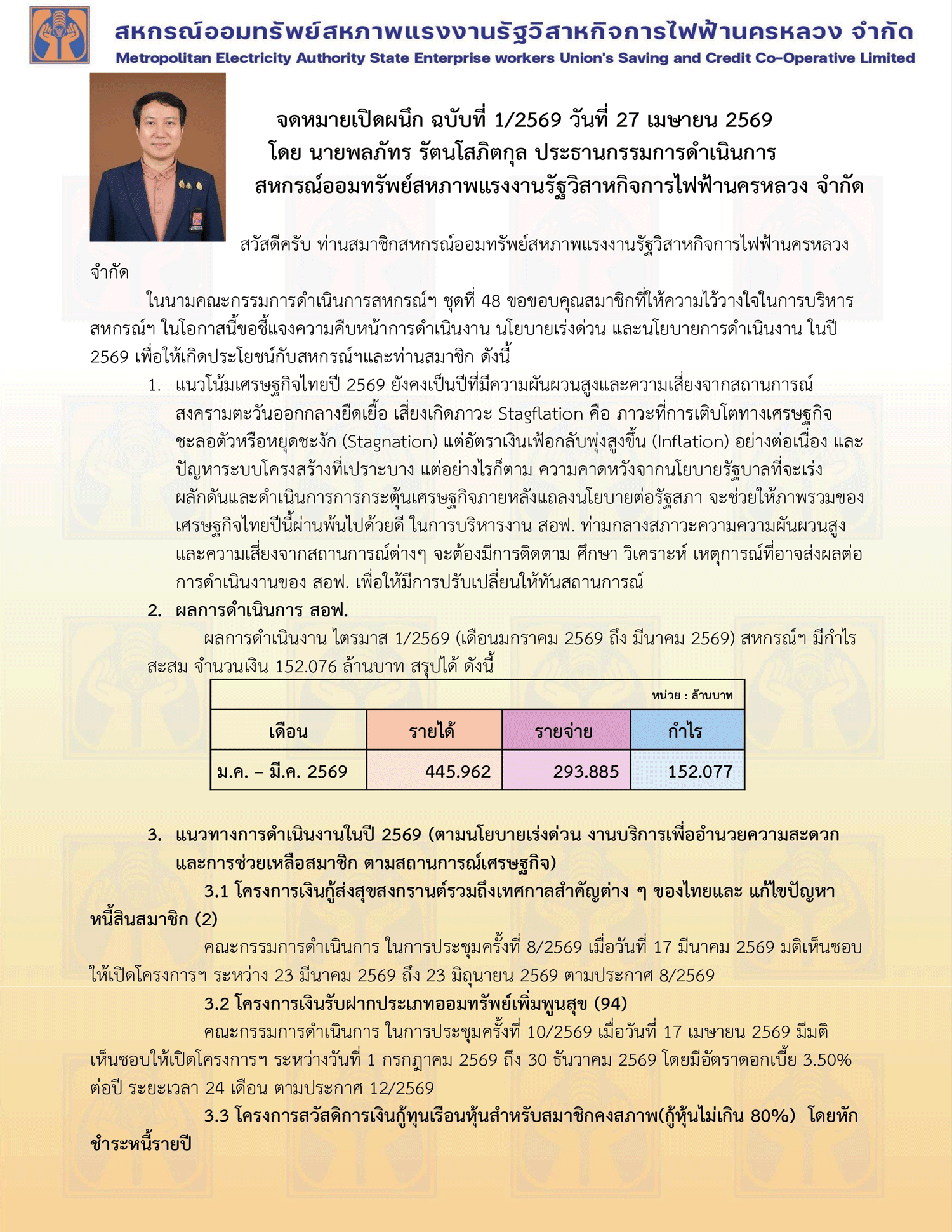 จดหมายเปิดผนึก ฉบับที่ 1 เดือน พฤษภาคม 2569